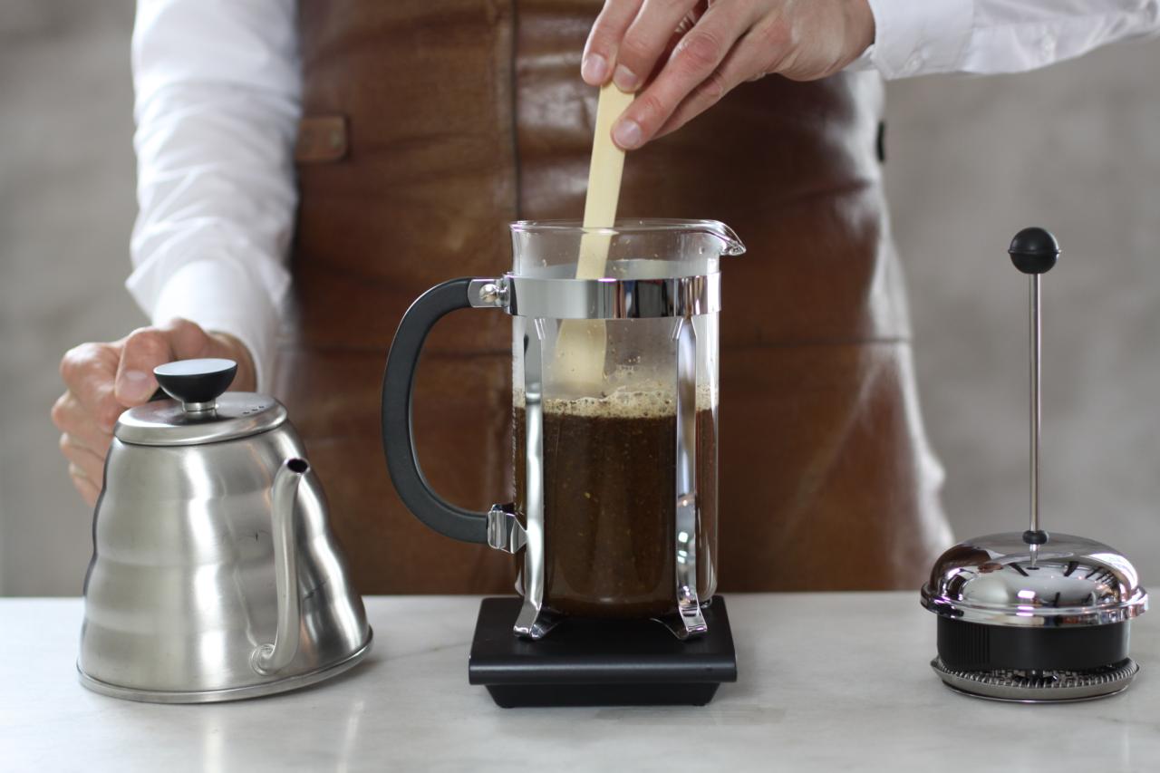 Ønsker du et brygg i retning av å være transparent og rent, kan du med fordel skumme av toppen før du skyver ned stempelet. Bruk en skje og "brekk" overflaten ved å røre i grutens overflate. Gruten vil synke og du kan skumme av toppen med skjeen. Kaffe og Presskanner kan du kjøpe i vår nettbutikk.