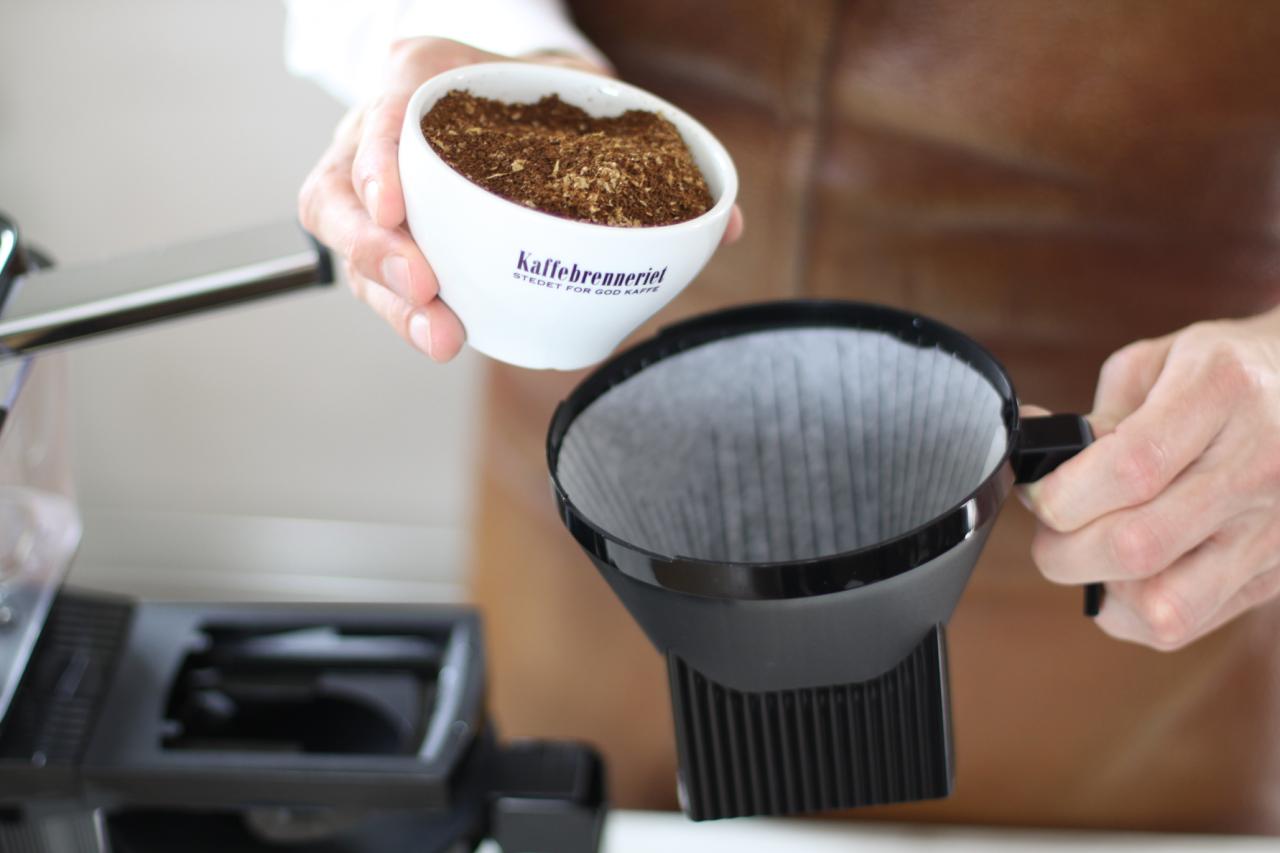 Fordel kaffe jevnt i filteret. For den beste smaksopplevelsen anbefaler vi alltid å bruke nymalt kaffe.
