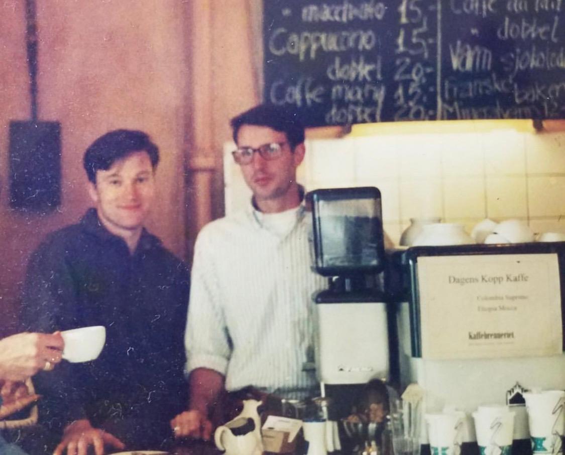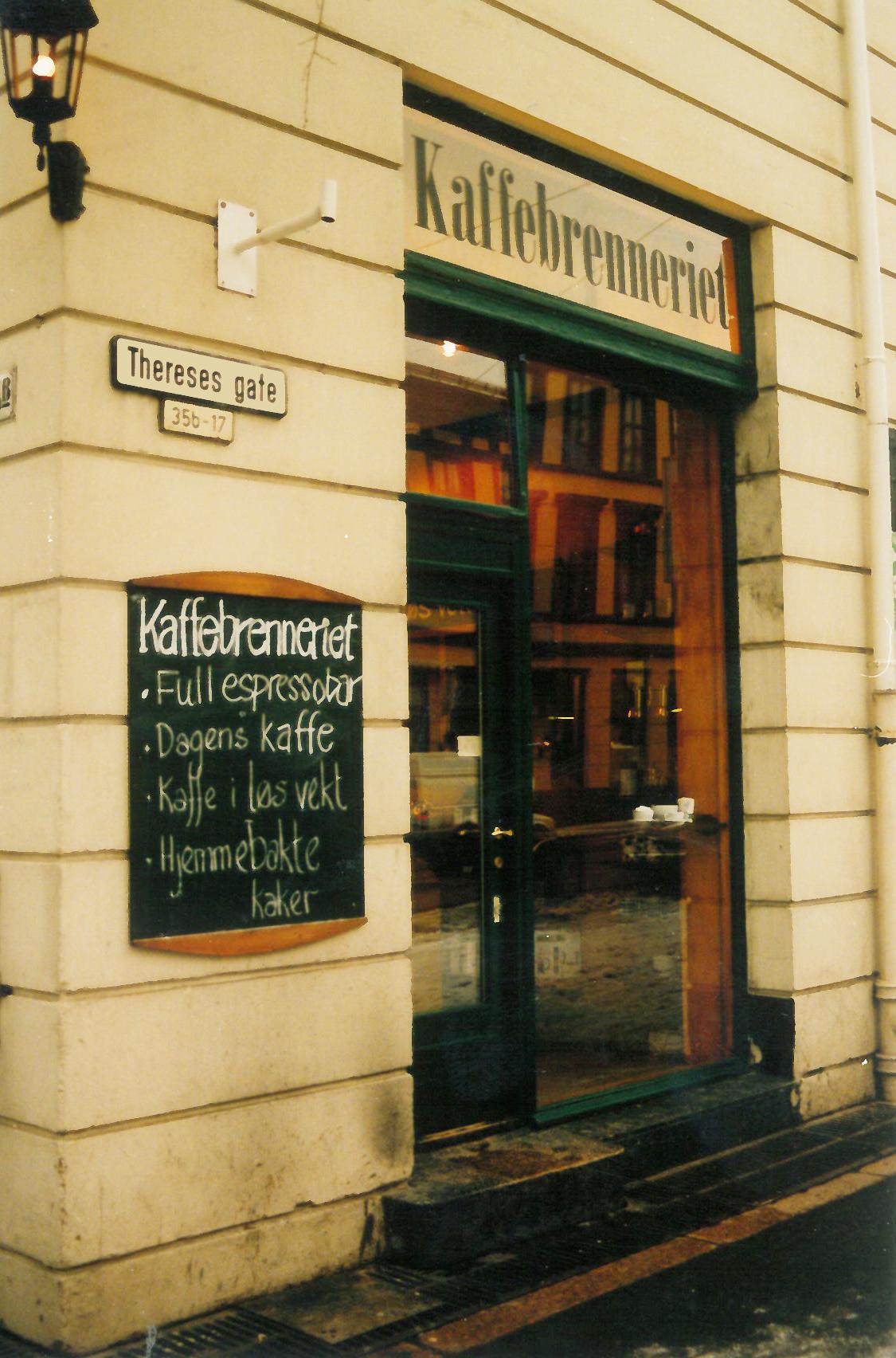 (Historisk, anno 1994) "Kaffe" Dette går ikke bra! sa den ene forbipasserende. Så fantastisk, sa den andre og reiv opp døra! Dette er bra sa den tredje, men dere burde ha vært på Karl Johan! Er det bare kaffe?... sa den fjerde! Dersom du liker kaffen, så kom tilbake i morgen og så skal dette gå bra, sa Thomas. Meningene var mange. Fra 1994 til i dag så tok de fleste feil med hensyn til "bare kaffe", og de som sa Karl Johan fikk rett - etterhvert nå er vi der også. I dag er Oslo kjent i innland og utland for sitt kaffemiljø. En endring eller en trend skjer ikke i enerom. Kaffemiljøet ble ikke skapt av Kaffebrenneriet i Theresesgate. Men, dette var begynnelsen. Inne på Østbanen var det også en kar som tenkte kaffe. Fra Theresesgate ble det imidlertid vevd mange tråder. Mange hadde sett kaffestedenes fremtog i utlandet, og fikk nå et bevis på at dette også kunne skje i Norge. Etter Kaffebrenneriet Theresesgate kom vår egen avdeling i Skovveien, så Kaffe og Krem, Åpent Bakeri, Evita, Java og andre. Vår forretning i Theresesgate med fantastiske baristaer er et flott midtpunkt i et koslig nabolag. Vi har ombygd innvendig flere ganger og har nå også utvidet til nabolokalet og kan med glede tilby våre gjester flere sitteplasser over hele tre "etasjer". Ta en tur innom Kaffebrenneriets første kaffebar og se selv.