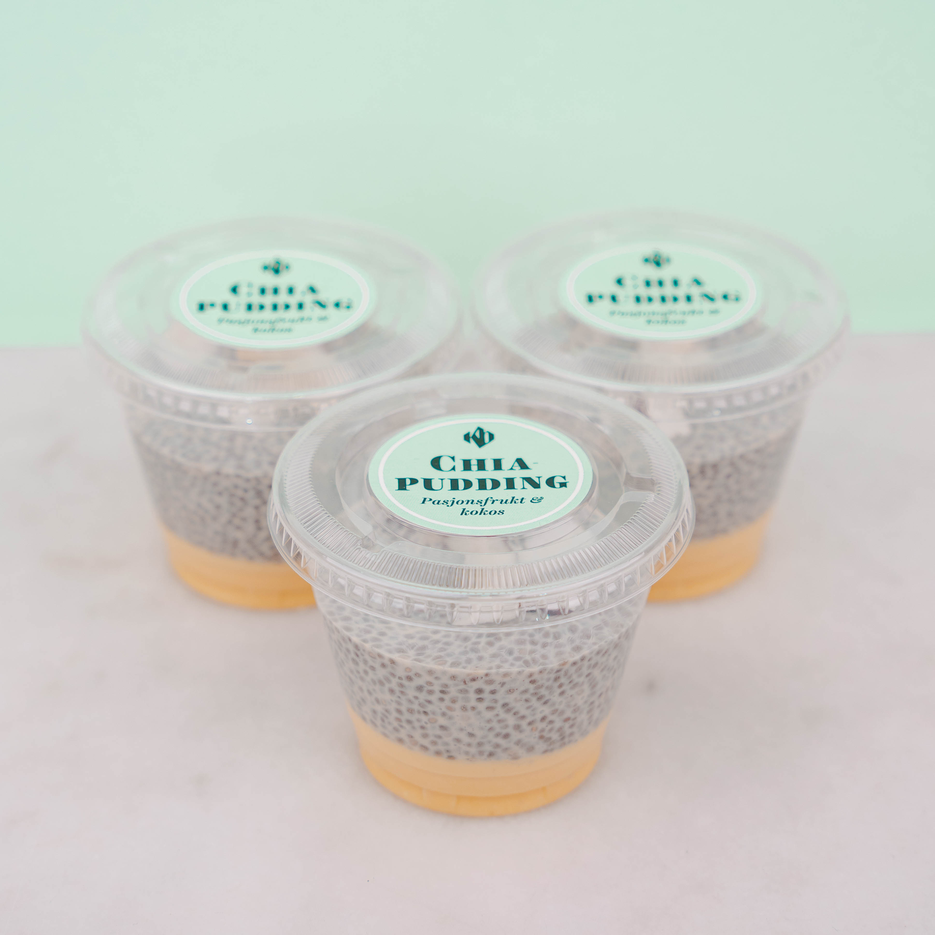 Vår egen Chiapudding med pasjonsfrukt & kokos. Chia er supermat proppfull av sunne næringsstoffer som Omega 3, jern og fiber. Chiapuddingen er trukket i usøtet Soyamelk. og er glutenfri, laktosefri og vegansk. Kjøp gjerne med Klassisk Granola eller Energimüsli som topping.