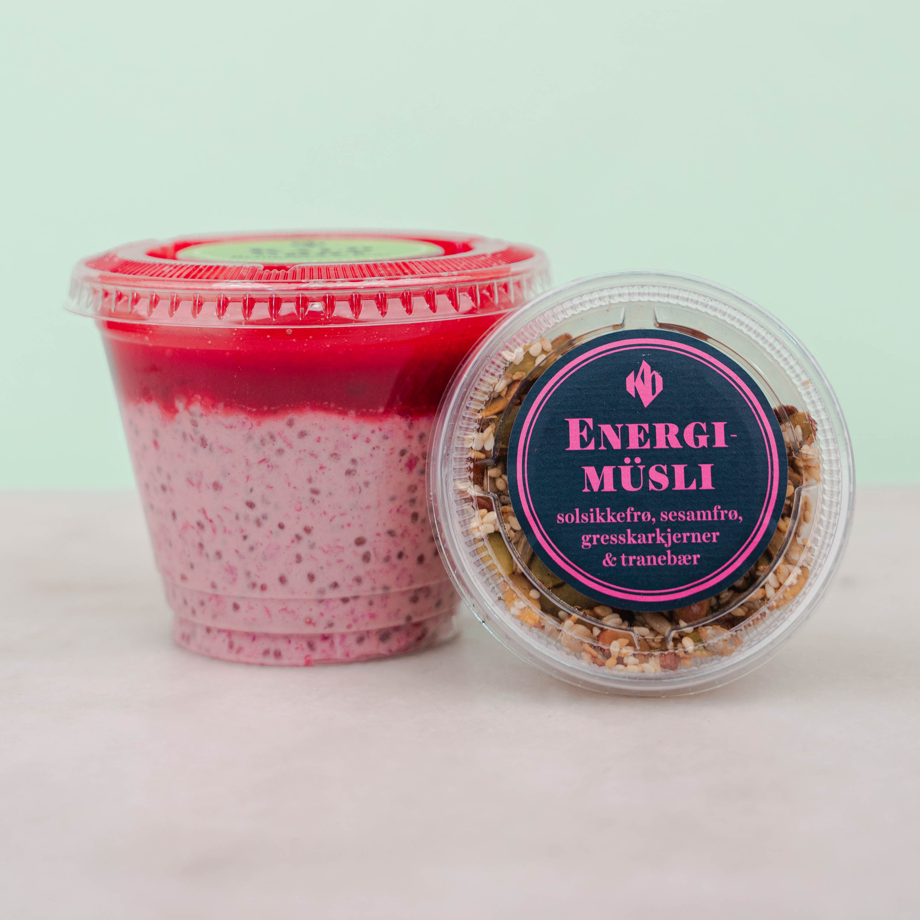 Vår egen Energimüsli med solsikkefrø, sesamfrø, gresskarkjerner & tranebær laget på Bakeriet vårt. Kjempegod sammen med vår Yoghurt, Kaldgrøt eller Chiapudding.