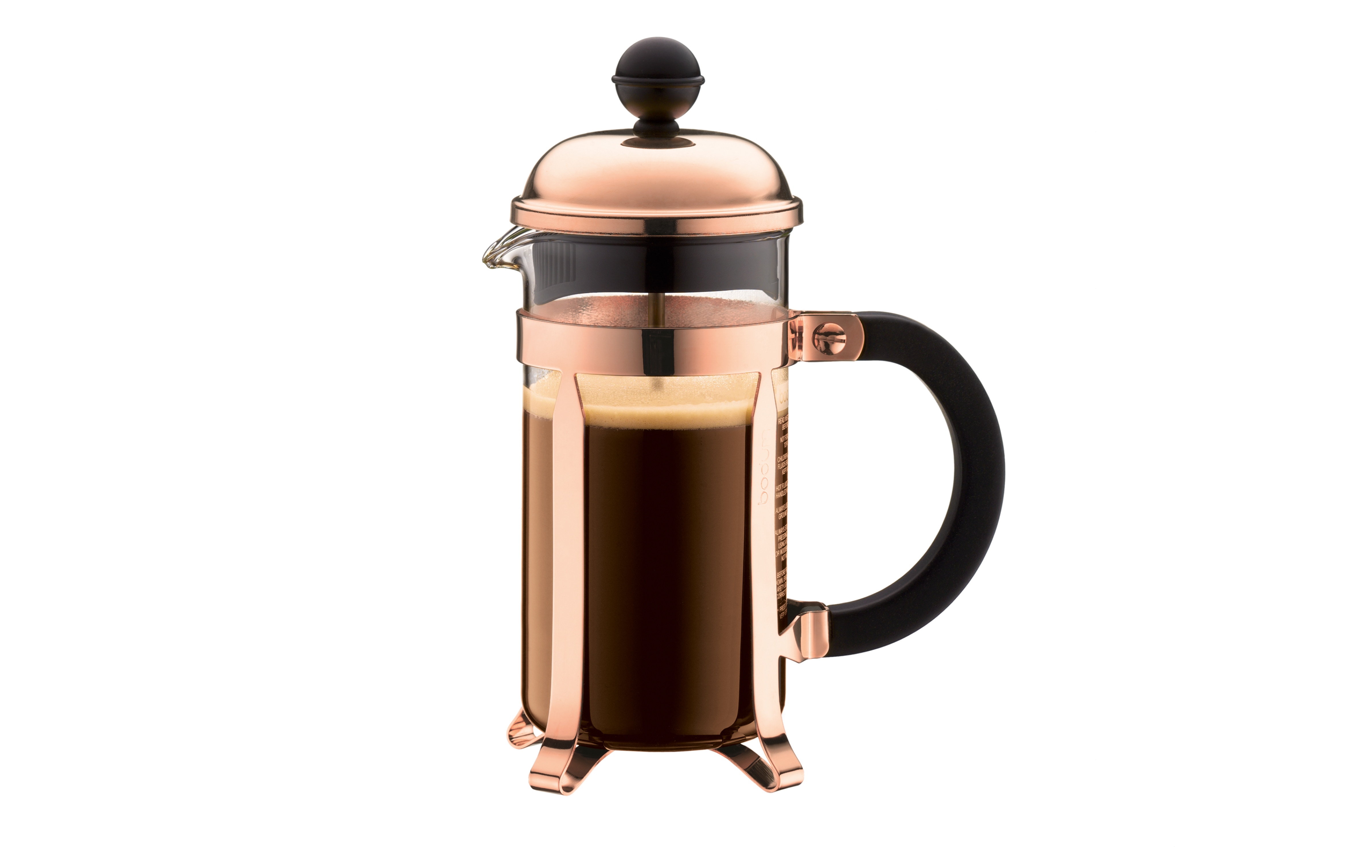 Chambord presskanne er laget av solid messing og flere lag av krom med kobberfarge. Dette er en tidløs klassisker fra den danske produsenten Bodum. Chambord 3-kopp rommer 3 desiliter vann. Tåler oppvaskmaskin.