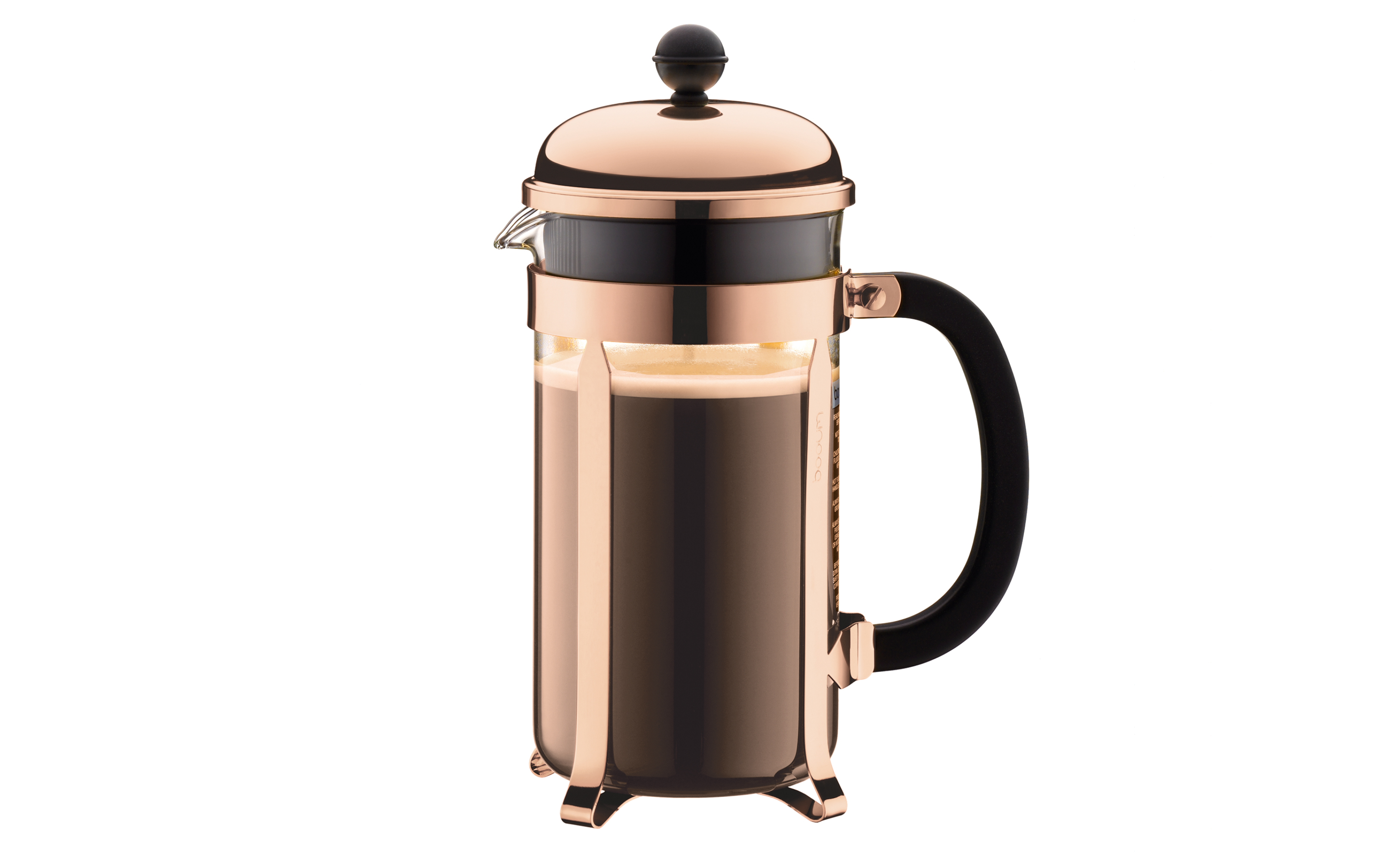 Chambord presskanne er laget av solid messing og flere lag av krom belagt med kobber. Dette er en tidløs klassisker fra den danske produsenten Bodum. Chambord 8-kopp rommer 8 desiliter vann. Tåler oppvaskmaskin.